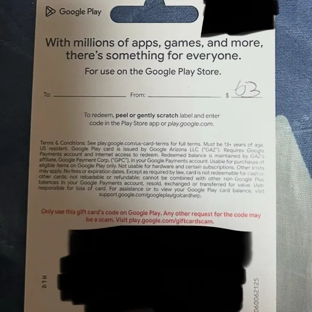 $36 Google Play Gift Card