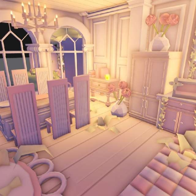 Soft, coquette pastel palace built inside a Shop House glitch build, featuring over 4,000 furniture pieces and a fully detailed, nature-inspired 2-story layout. The home is covered in lush greenery, roses, and gentle pastel touches, complete with a cute balcony. Cozy grind areas for aging pets comfortably, along with 3 mannequins that are perfect for outfit displays or aesthetic setups. 🪞