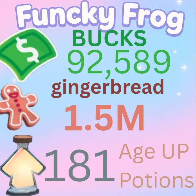 1.5M ginger bread 92,589k bucks 181 age up