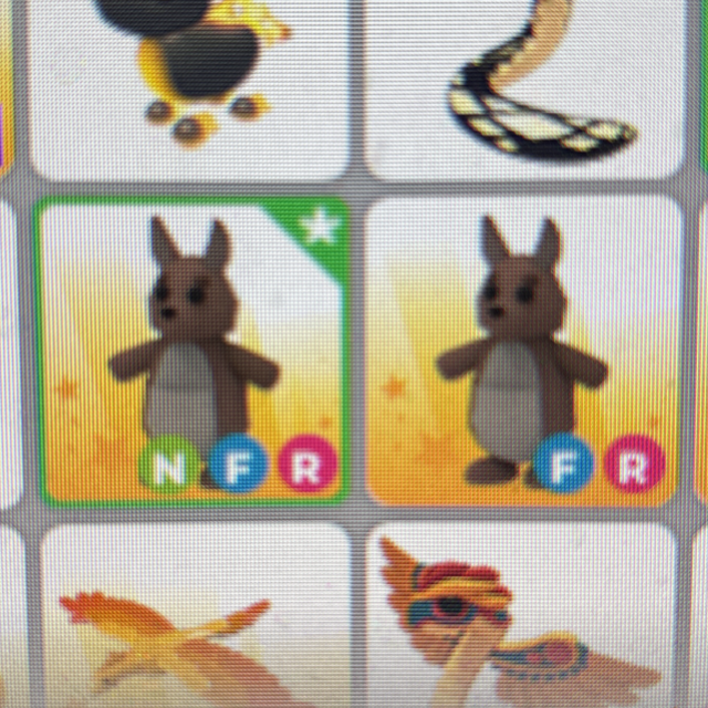 No pot giraffe and neon fr kangaroo and a normal fr kangaroo