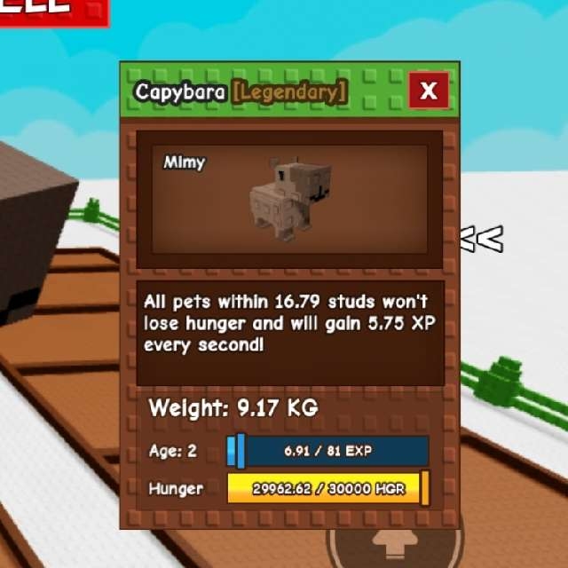 84.1kg at Age 100 Titanic Capybara (as of now 9.17kg age 2) – Grow a Garden (Roblox)