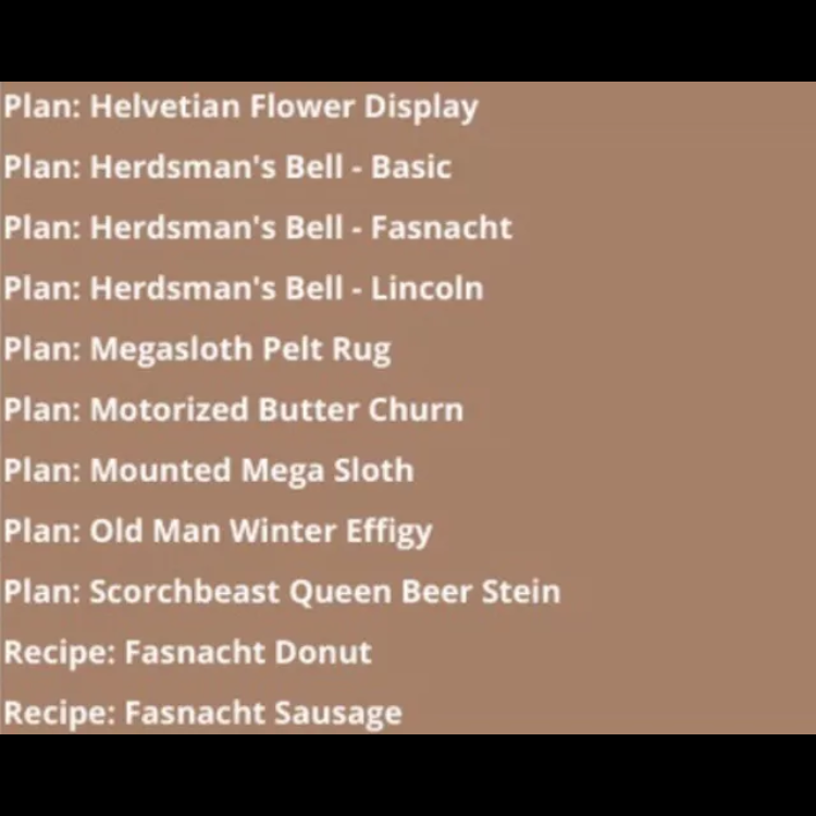 Every tradable plan and recipe from Fasnacht, including 45 plans and 2 recipes.