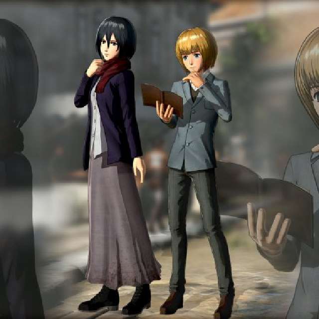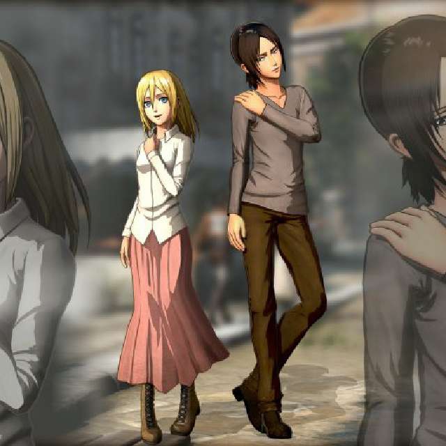 Xbox One: Eren, Mikasa, Armin, Levi, Christa, Ymir, Reiner, and Bertholdt plain clothes costumes.
