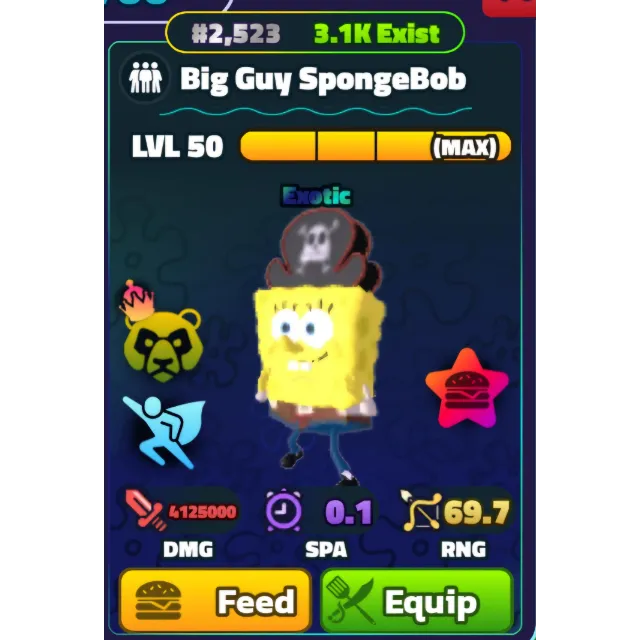 You are purchasing 1 BIG GUY SPONGEBOB (SILVER SERIAL) SPONGEBOB TOWER DEFENSE as shown in the screenshots.