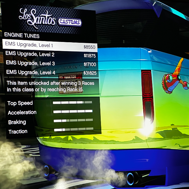Imani Tech: The vehicle is capable of receiving Imani Tech upgrades, including a missile lock-on jammer and a remote control unit.