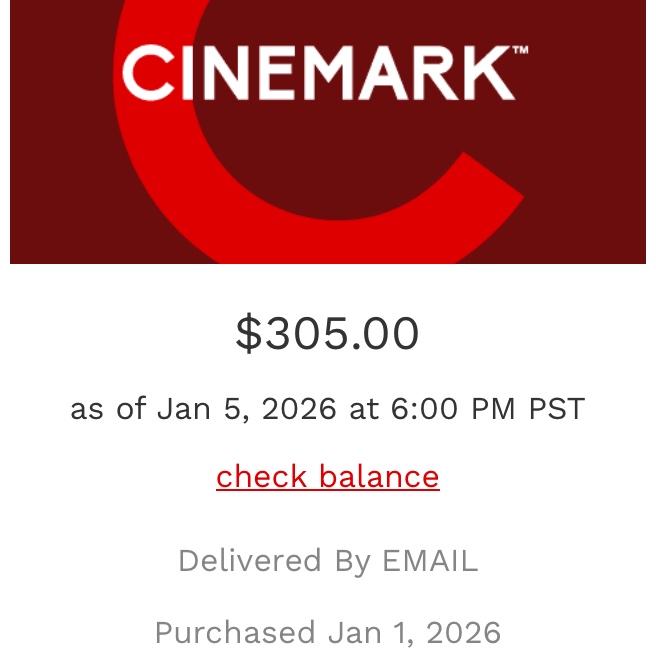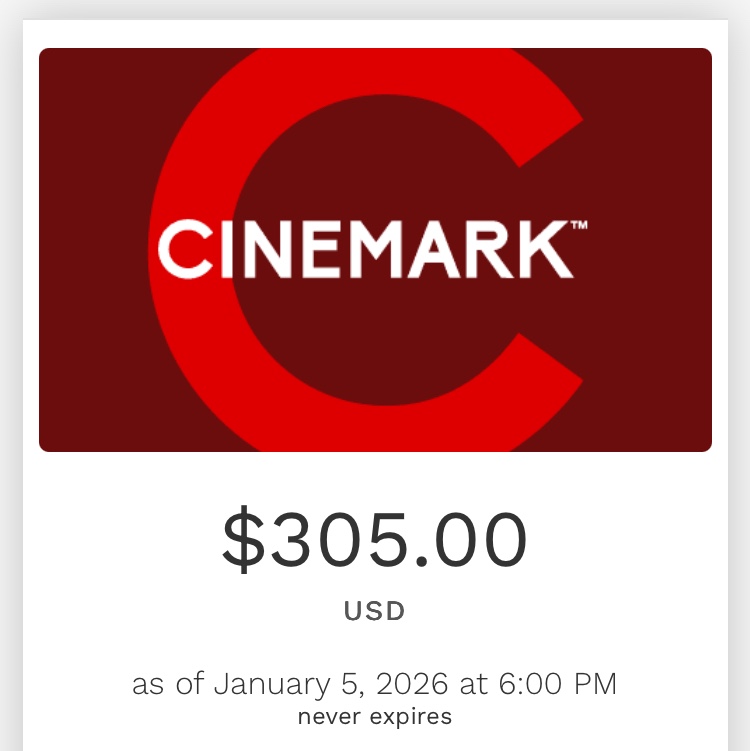 Cinemark $305 giftcard
