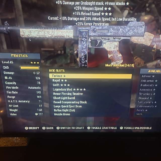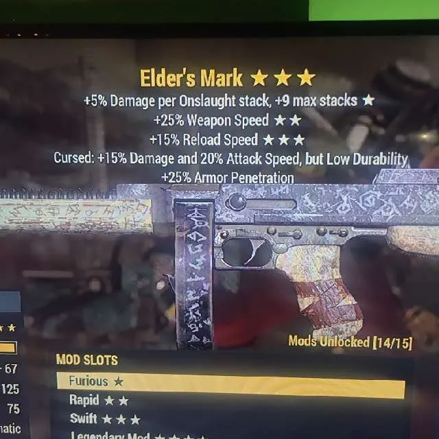 Cursed: +15% Damage and +20% Attack speed,but low durability