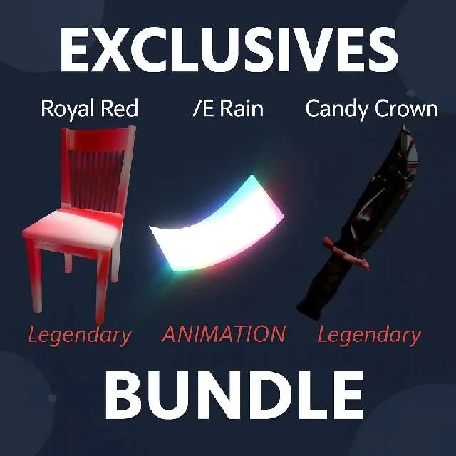 Comes with x3 rare exclusives: Royal Red, Candy Crown, and /e Rain emote