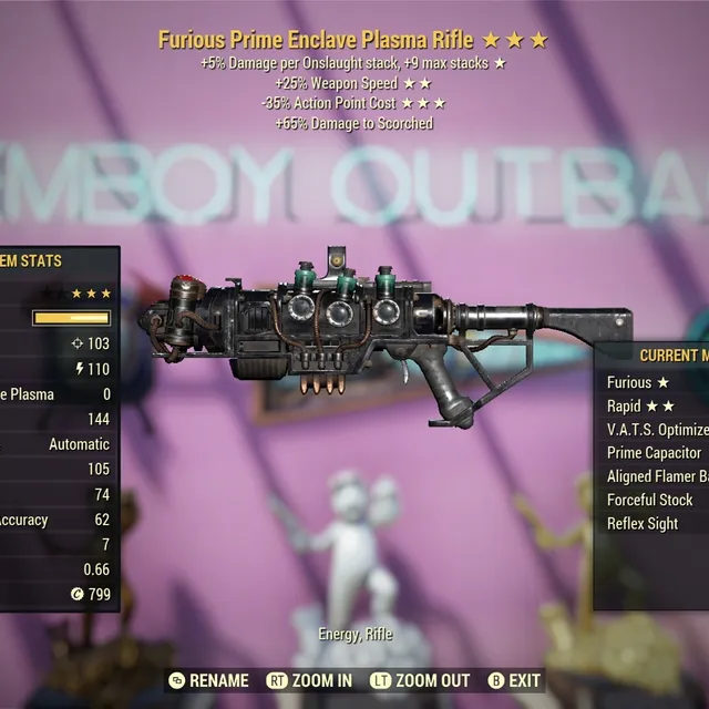 Furious 25 Faster Fire Rate Speed 35 Less Vats AP Cost Enclave Plasma Flamer