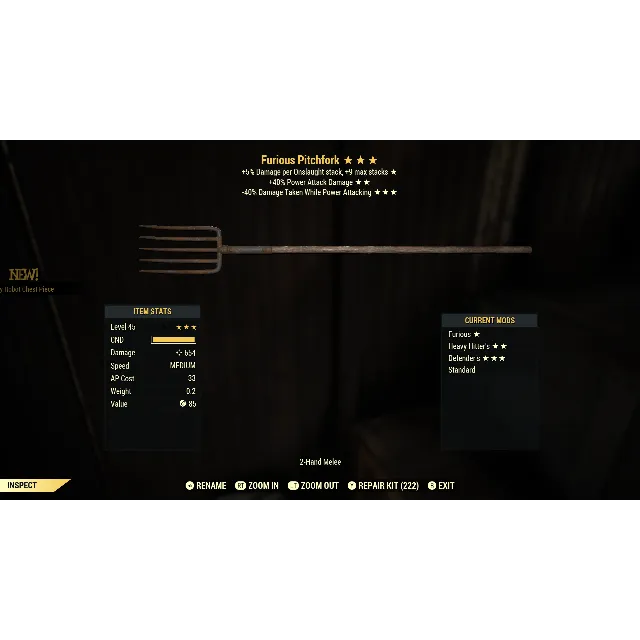 Furious, heavy hitter’s, defender’s pitchfork. Max level