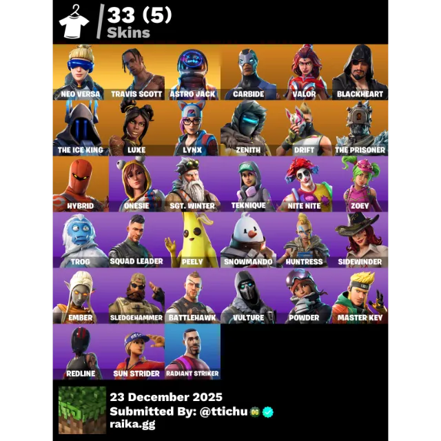 บัญชีเกมFortnite : 33 Skins Travis Scott | Neo Versa | Astro Jack | Carbide | Valor | Blackheart ✅ All Platforms 📑 Full Access