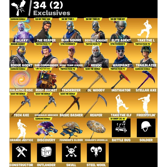 Fortnite: 59 SKINS Galaxy | The Reaper | Blue Squire | Royale Knight + Save the World Founder's Deluxe ✉️ Full Access