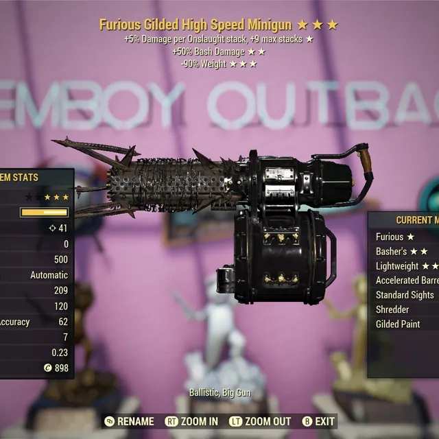 Furious 50% More Bash Damage 90 Reduced Weight Gilded Minigun
