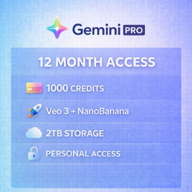 Selling Gemini Pro Private Access to help make your daily tasks faster and more efficient. Includes 2TB Google Drive Storage, VEO 3 access, and extended access to NANO BANANA PRO.