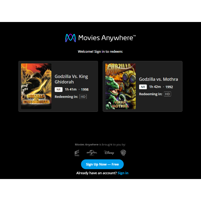 Receive one code that gives you digital HD access via Movies Anywhere for: