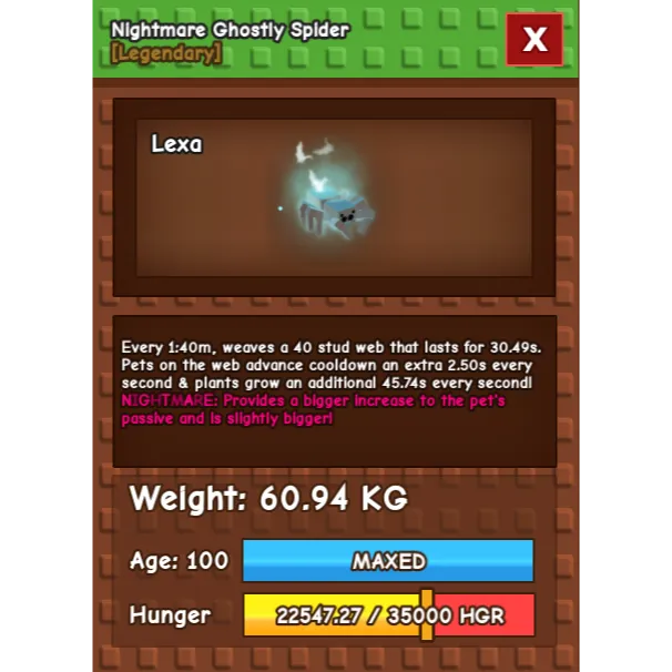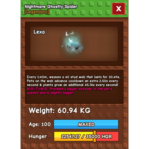 Grow a garden - HUGE NIGHTMARE GHOSTLY SPIDER 60kg