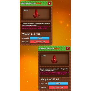 GROW A GARDEN - HUGE NIGHTMARE RUBY SQUID 60 - 61KG