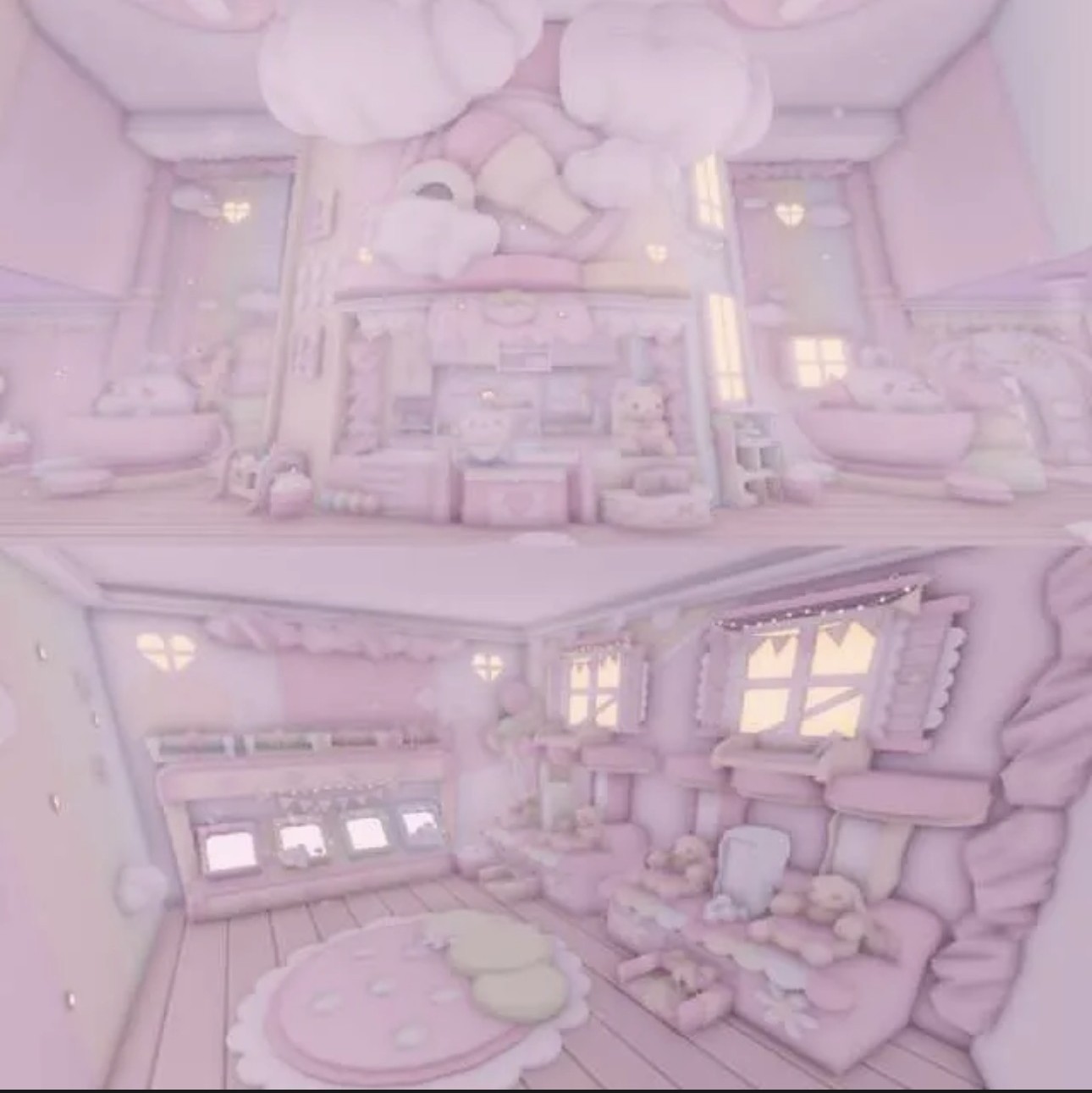 A magical candy-filled dream where soft pastels, fluffy clouds, and adorable sugar bears come together to create the ultimate cozy fantasy home. Every corner feels like stepping into a warm ice cream shop made of sweetness, comfort, and pure joy.
