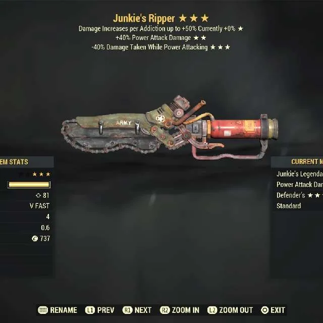 Junkie's +40% power attack damage -40% damage taken while power attacking Ripper Max Level
