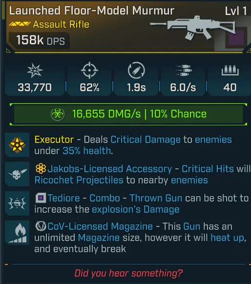 Level 1 158k Damage Assault Rifle