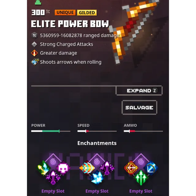 Build your dream bow using the top-tier enchantments, tuned to your current Power Level. All bows come gilded with premium passives for devastating synergy.