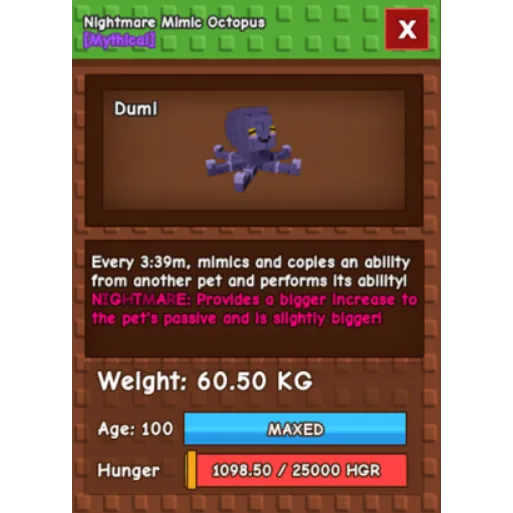Nightmare Huge Mimic Octopus Grow A Garden max Ability without any Toy