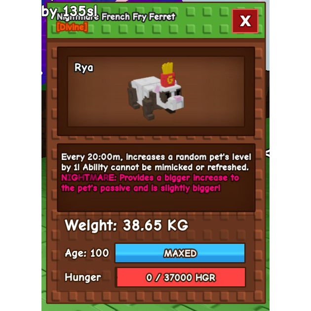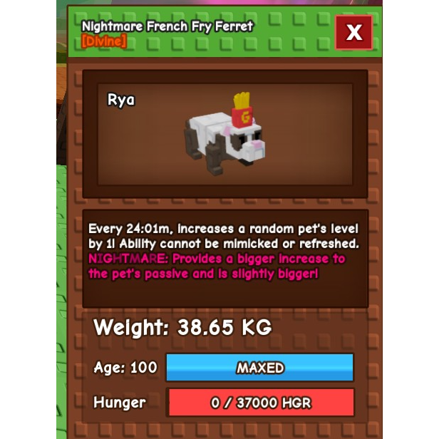 nightmare semi-huge french fry ferret (max age) 38 kg