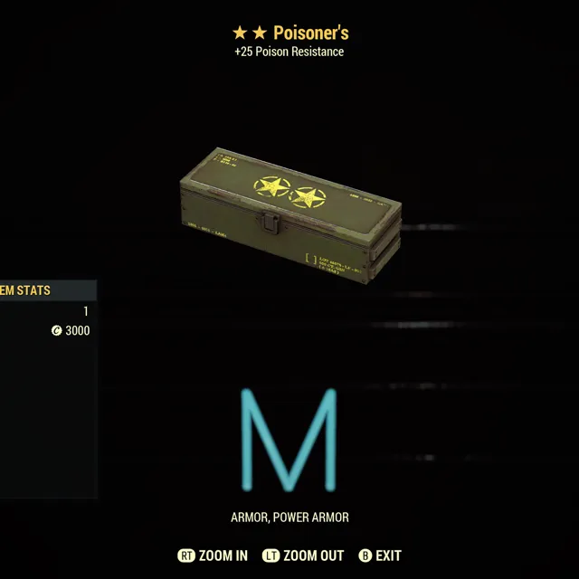 Fallout 76 Xbox one / 10 Poisoners two star armor mods.