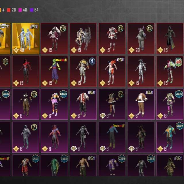 PUBG account with 4 gold outfits, advanced prayer beads as shown in the pictures, and 1 material