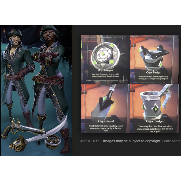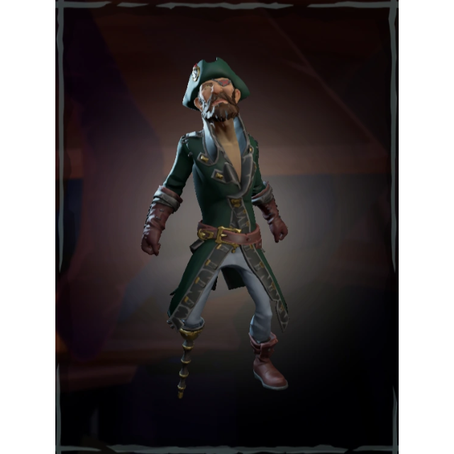 The Sea of Thieves Mercenary Pack includes cosmetic items like a hat, jacket, cutlass, and pistol with a distinctive green theme. The pack also contains a compass, and the set has been expanded to include many other items, such as clothing, equipment, and other weapons that can be purchased in-game, like the Mercenary Belt, Boots, Drum, and Lantern.