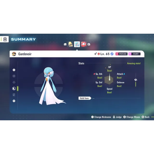 Shiny Alpha Gardevoir Modest Nature 6 IV for Pokemon Legends ZA