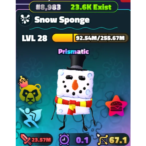 Snow Sponge Unit from SBTD. Traits come as shown with Power Patty