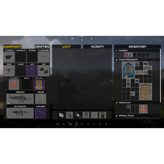 • Find many different firearms, melee weapons, clothing and different types of equipment.