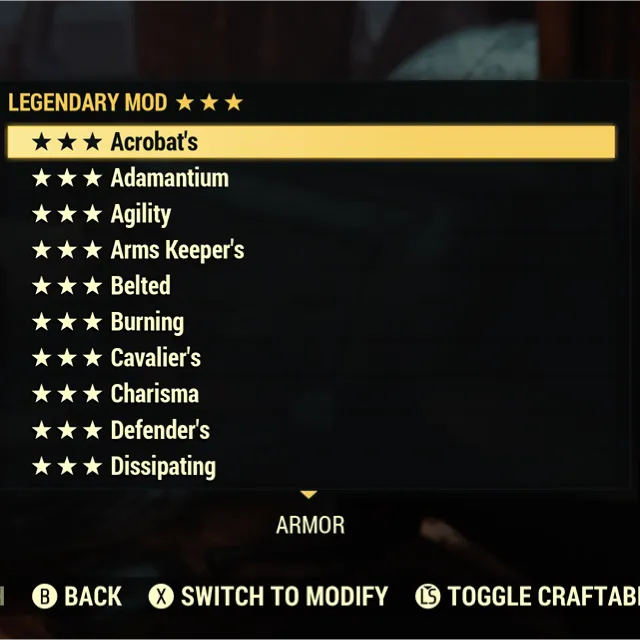 Fallout 76 Xbox one / Choose any combination of 5 three star mods to make a bundle. ALL base game mods are included as well as some of the new ones. Available mods include: