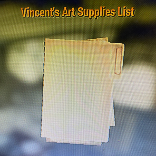 Vincent’s art supplies list.