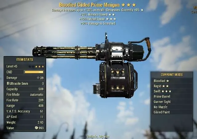 Gilded MiniGun | God Roll | Dev Room Paint