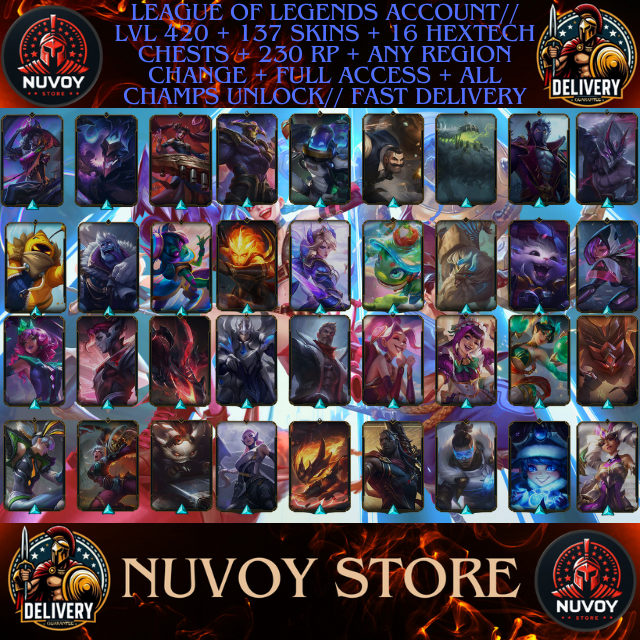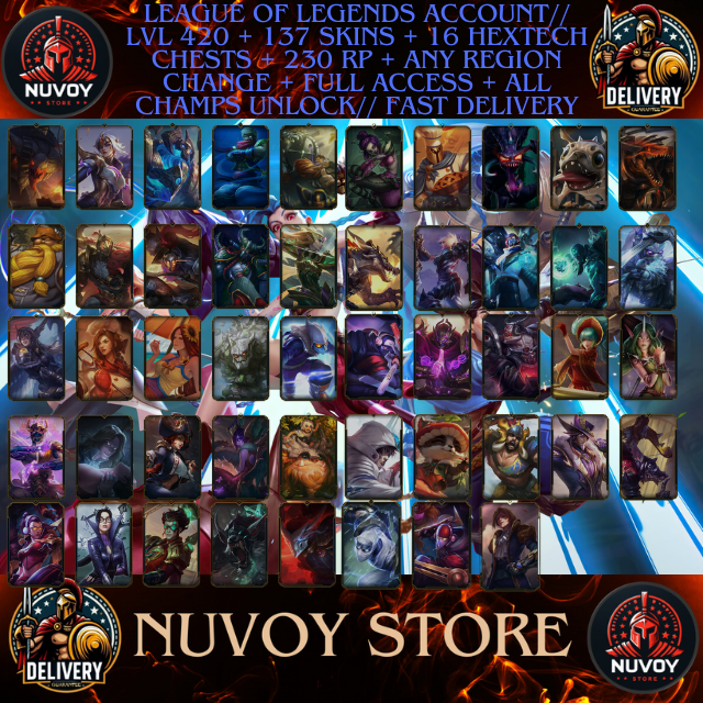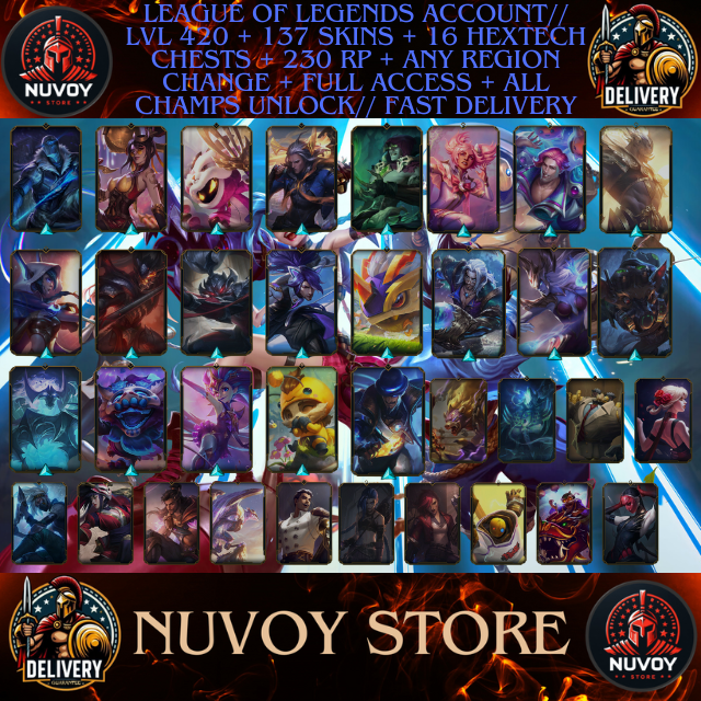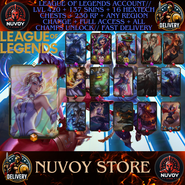 League of legends Account// LVL 420 + 137 SKINS + 230 RP + Any Region + Full Access + All Champs Unlock // Fast Delivery