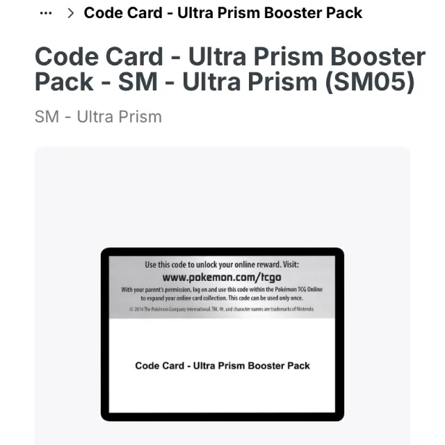 Pokémon ultra prism - online booster pack code