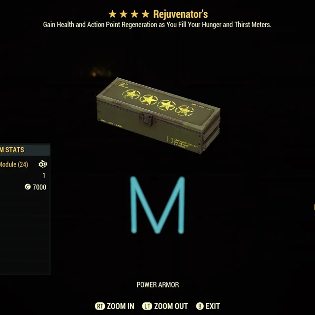 Fallout 76 Xbox one / 5 Rejuvenators four star power armor mods. Make sure to read mod description it was recently changed.