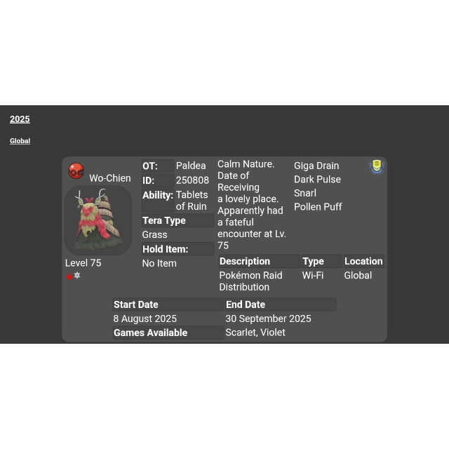 🌟Shiny Wo-Chien Tera Raid Event | Pokémon Scarlet & Violet | Untouched🌟