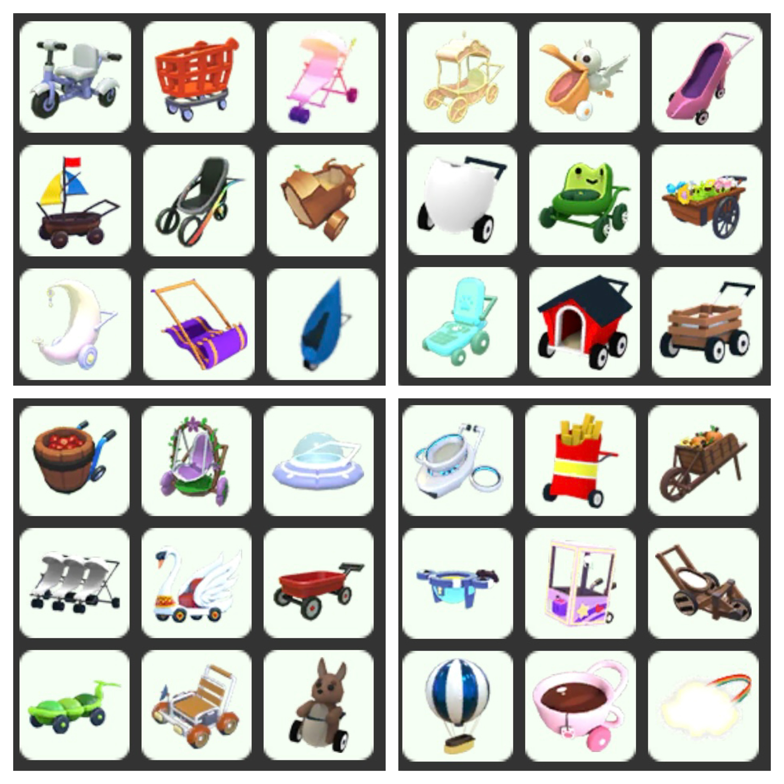 Type: Bundle of 36 different strollers for the adopt me collector