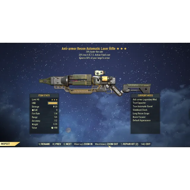 Anti-Armor 25% Faster Fire Rate Laser Rifle 25% Less Vats Cost