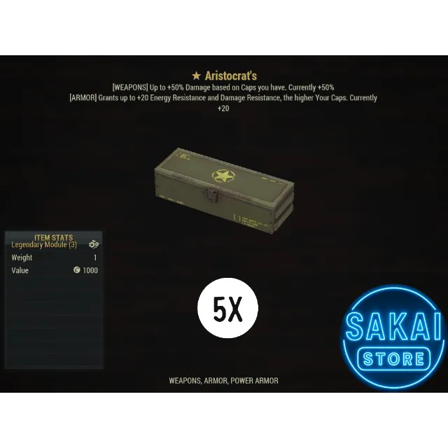 ✨(WEAPONS) UP TO +50% DAMAGE BASED ON CAPS YOU HAVE OR (ARMOR) GRANTS UP TO +20 ENERGY RESISTANCE AND DAMAGE RESISTANCE THE HIGHER YOU CAPS✨