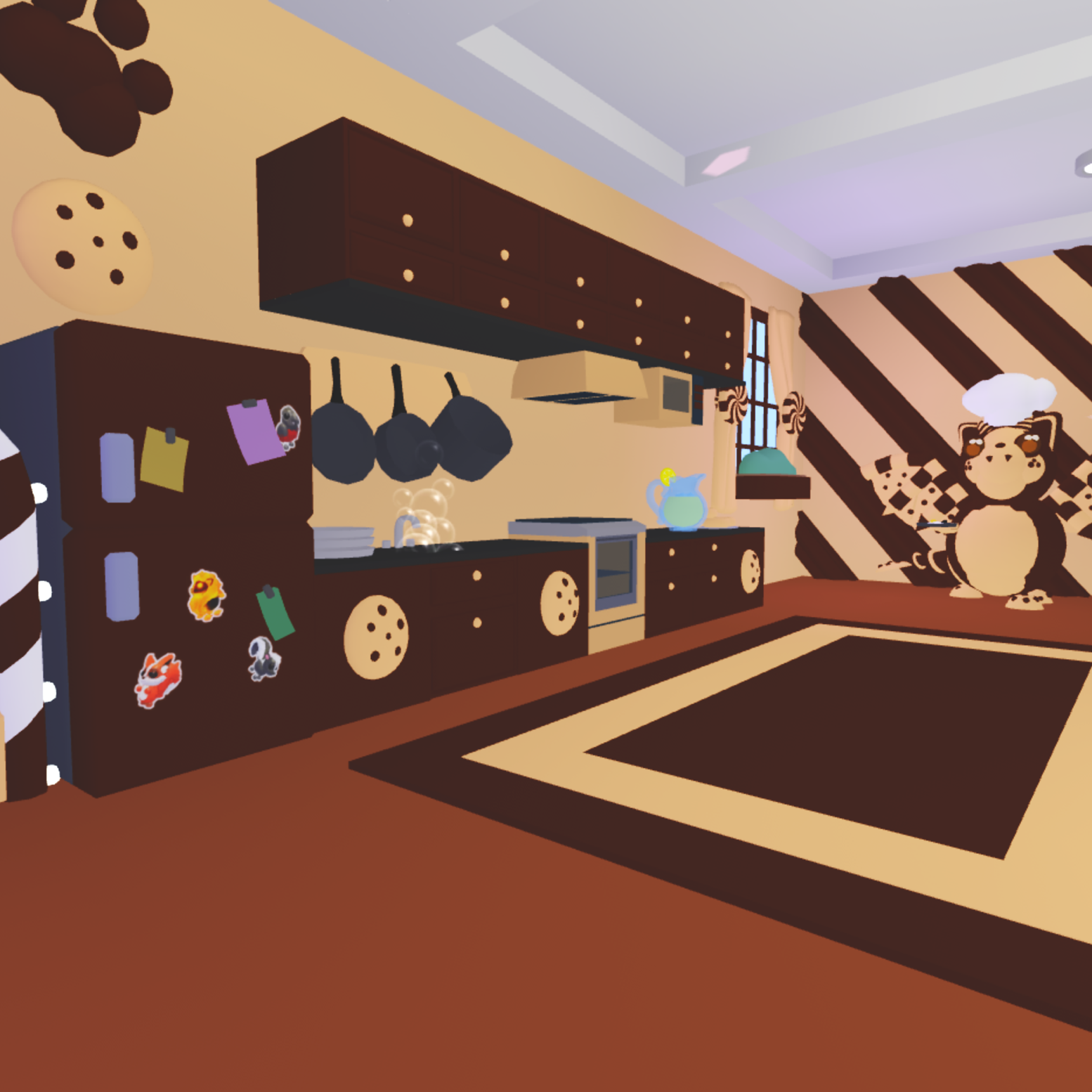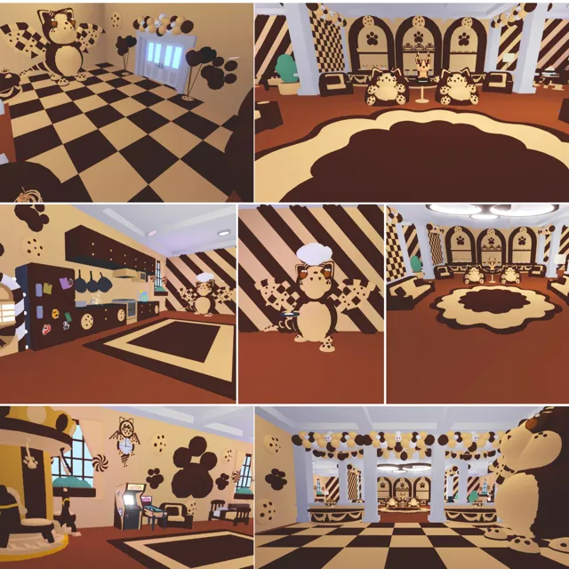 Step into the sweetest home on the block! This chocolate chip bat dragon–themed family house is cozy, creative, and fully equipped for all your Adopt Me needs. With warm cookie-inspired designs and adorable bat dragon touches throughout, it’s the perfect mix of cute + functional.