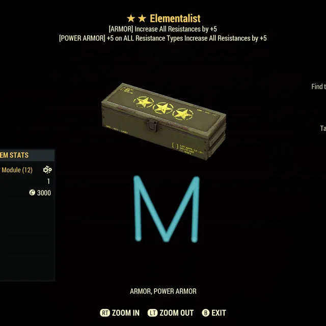 Fallout 76 Xbox one / 5 Elementalist TWO STAR armor mods.