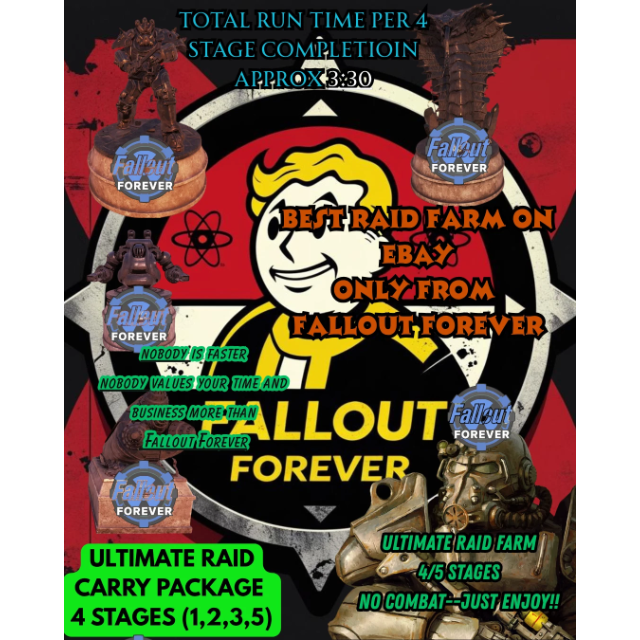 Get your Fallout 76 Raid Carry done in record time with the only seller on eBay offering a 4-stage rapid completion (Stages 1, 2, 3, and 5).