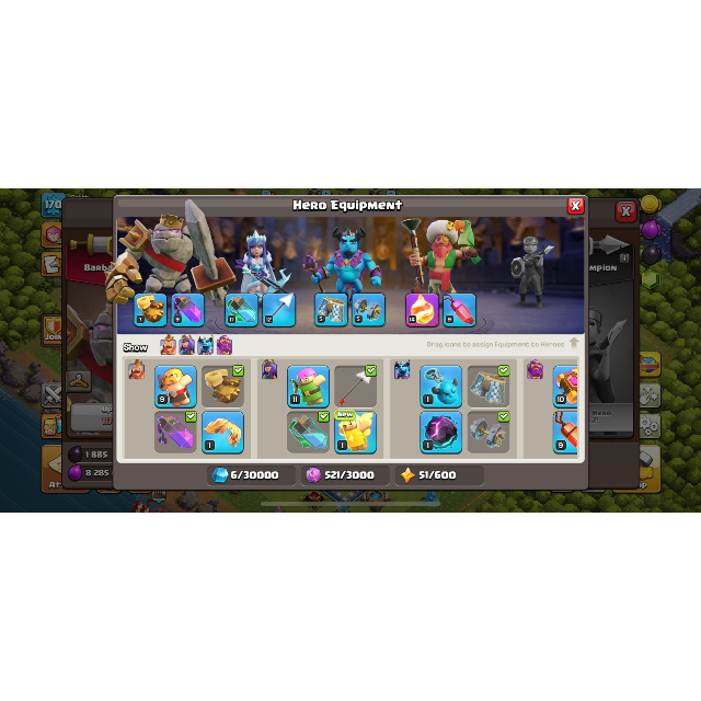 FULL MAX TH12🔥XP 170🔥4 SKINS HEROES 65-65-40-39🔥FIREBALL LV 14🔥EPIC EQUIPMENT🔥#51