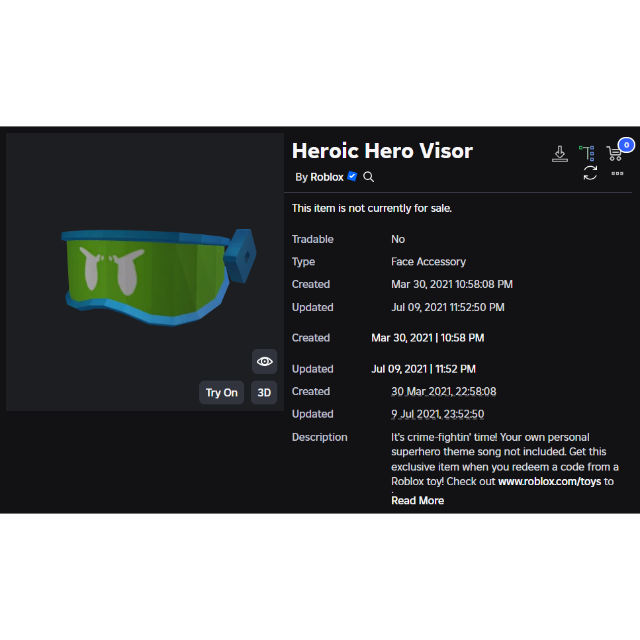 Item: https://www.roblox.com/catalog/6590377982/Heroic-Hero-Visor
