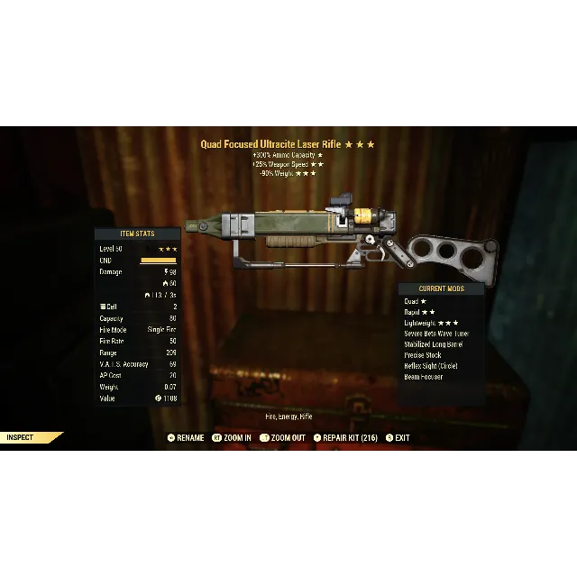 Quad, rapid, lightweight ultracite laser rifle. Max level