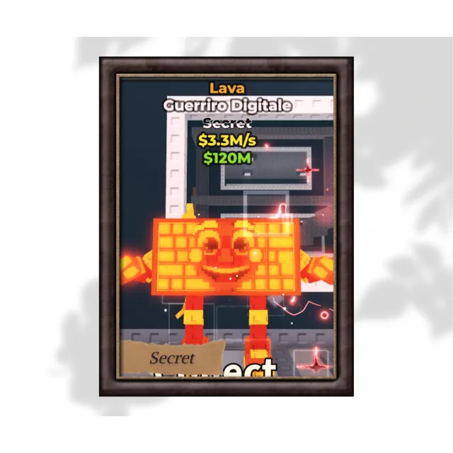 Ignite your Brainrot empire with the Lava Guerriro Digitale, a molten masterpiece from the Secret tier. This rare Lava Edition unit fuses digital chaos with volcanic energy, featuring a glowing orange-red design and a keyboard-faced warrior forged in pixel fire. Its blazing presence and steady income make it a top-tier pick for collectors and strategists alike.